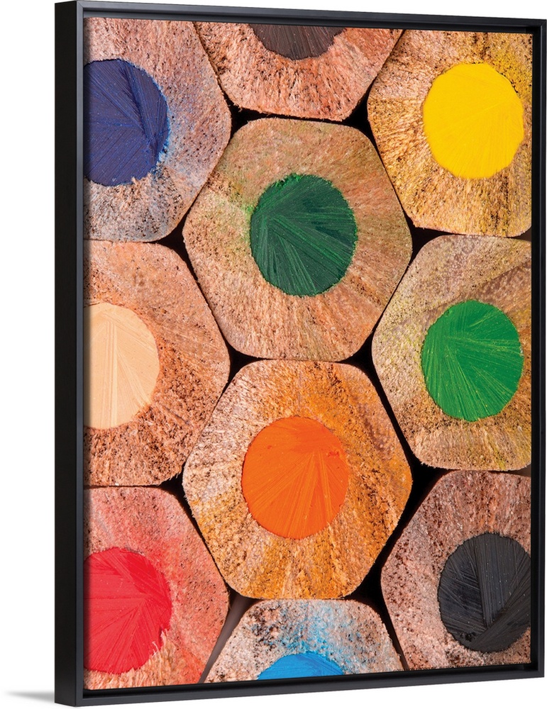 <p>Close up photograph of ends of stacked colored pencils.</p>
