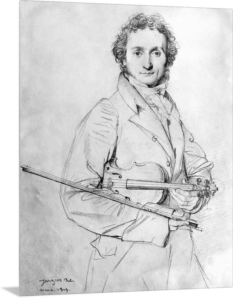 <p>Niccolo Paganini, (1782-1840), renowned Italian violinist. 3/4-length frontal pencil sketch, 1819, by French painter Jean Auguste Dominique Ingres (1780-1867).</p>