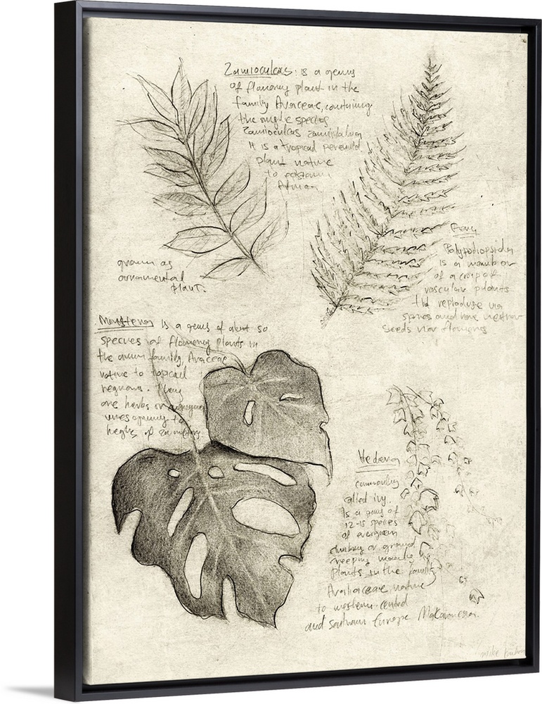 Art Rustic Drawing Florals Ferns Leaves Monstera Mike Koubou