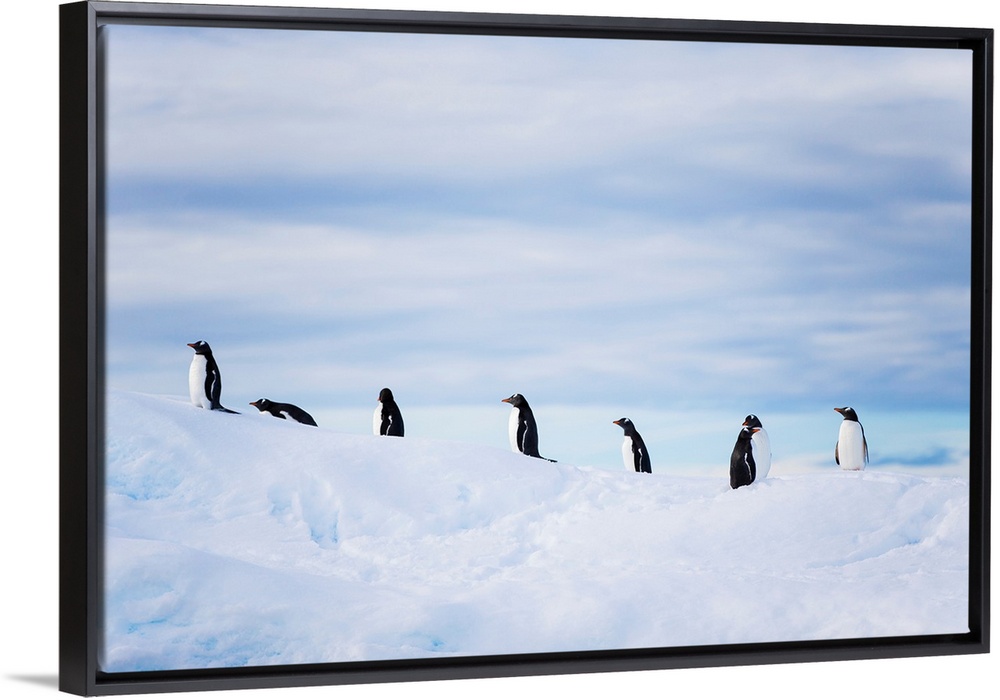 <p>Penguins on top of an iceberg in Antarctica.</p>