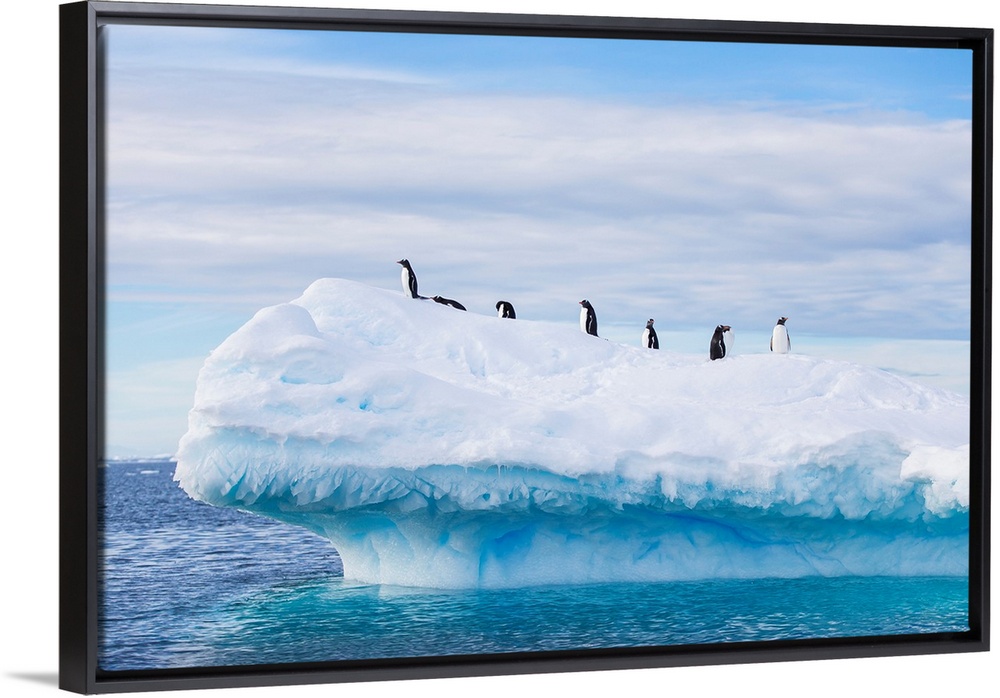 <p>Penguins on top of an iceberg in Antarctica.</p>
