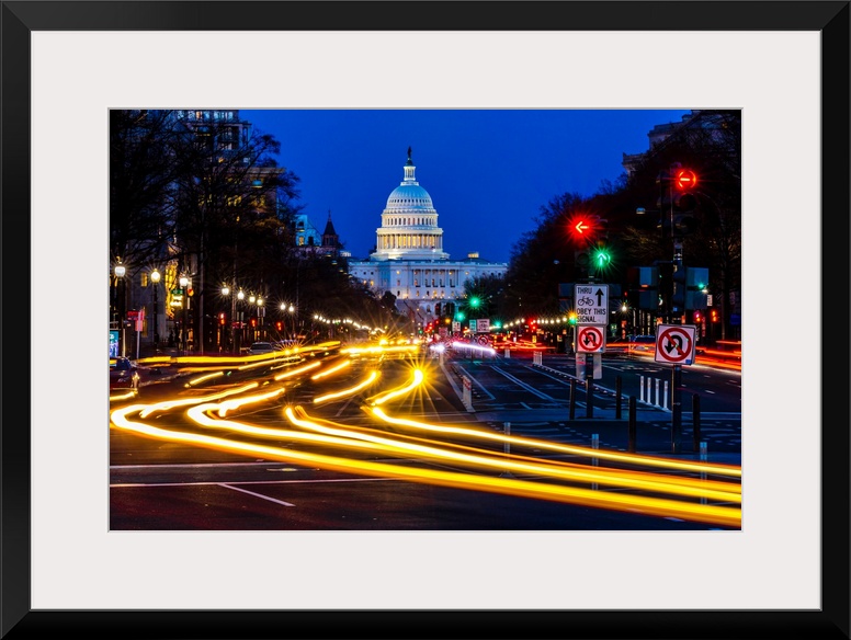 <p>Pennsylvania ave to us capitol with streaked lights going towards us capitol at night, washington d.c.</p>