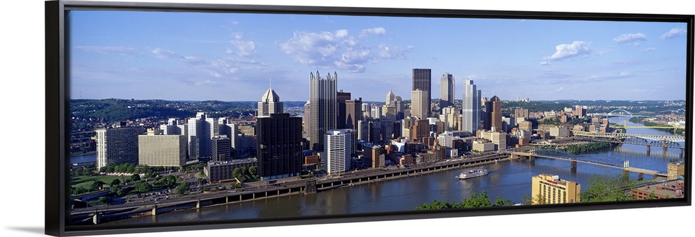 <p>Long photo on canvas of the cityscape of Pittsburgh with a river running through it.</p>