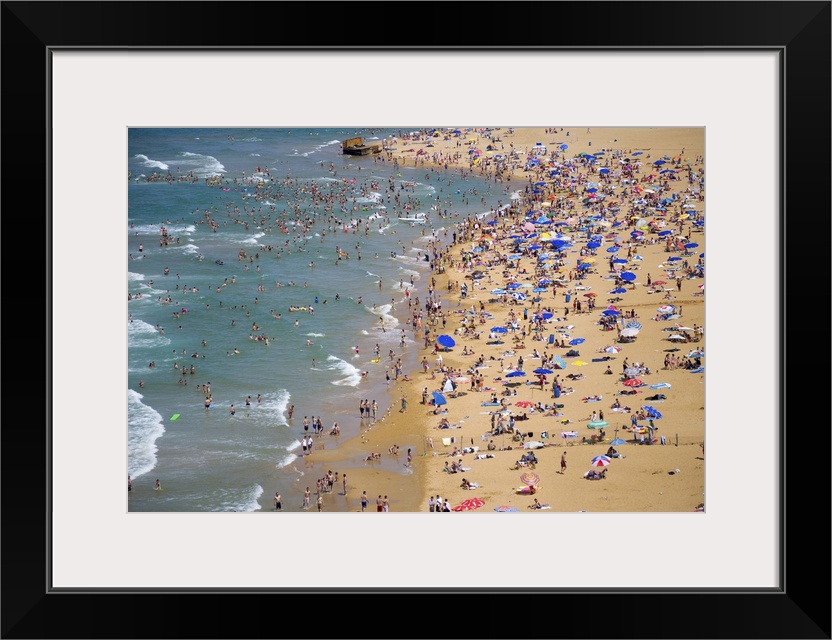 <p>People enjoying the beach and swimming in the sea, aerial, Gumusdere, Black Sea coast of Istanbul, Turkey</p>