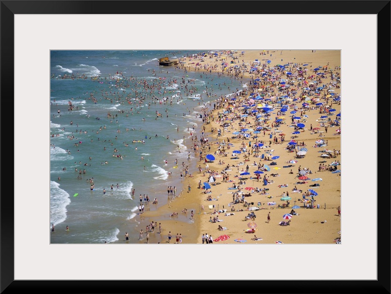 <p>People enjoying the beach and swimming in the sea, aerial, Gumusdere, Black Sea coast of Istanbul, Turkey</p>