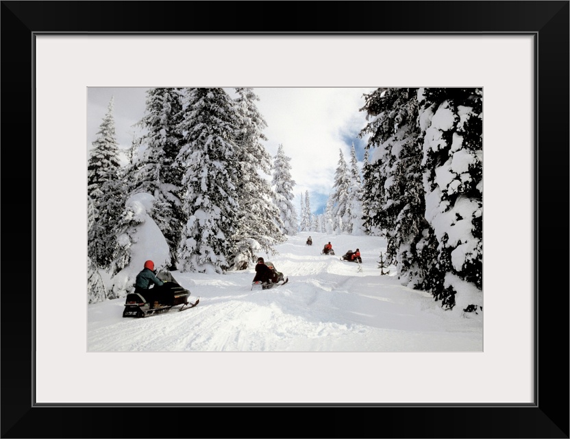 <p>People on snowmobiles in Yellowstone National Park in Wyoming, USA</p>