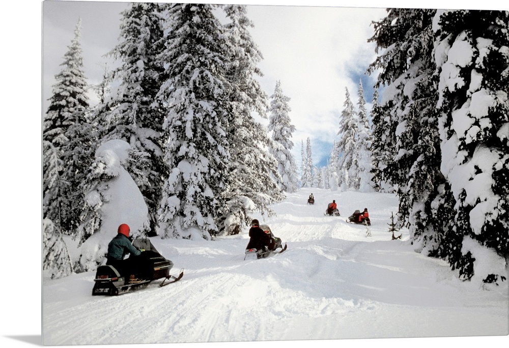<p>People on snowmobiles in Yellowstone National Park in Wyoming, USA</p>