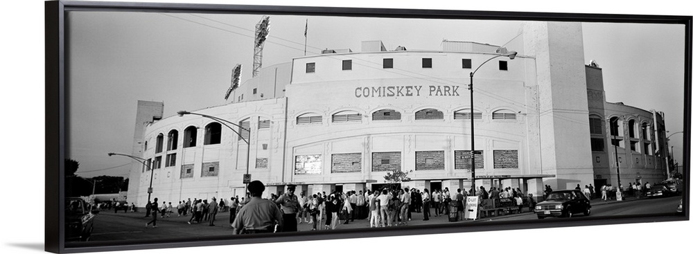 <p>A crowd of people is shown as they enter the gates at Comiskey Park.</p>