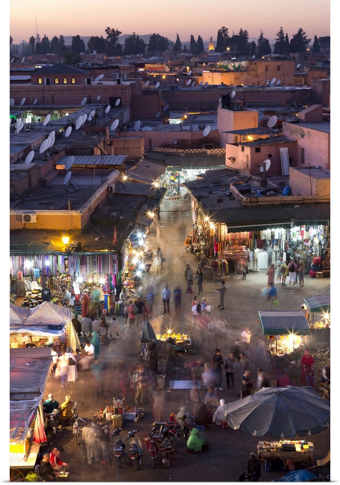 <p>Crowds of locals and tourists walking among the shops and stalls in the Djemaa el Fna at sunset, Marrakech, Morocco, North Africa, Africa</p>