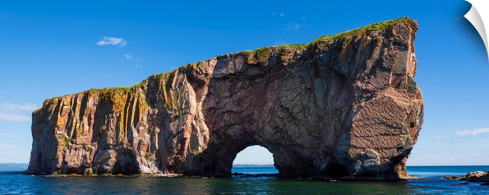 <p>Perce Rock in the Gulf of Saint Lawrence, Bonaventure Island and Perce Rock National Park, Perce, Quebec, Canada</p>