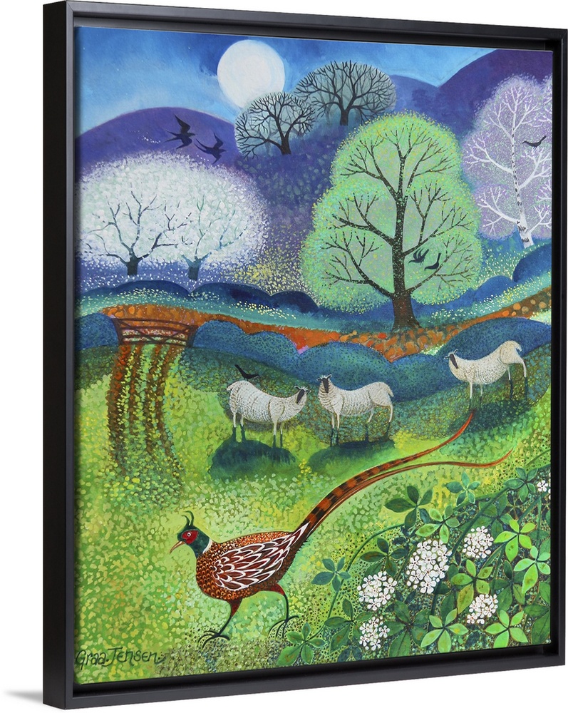 Art Contemporary Art Lisa Graa Jensen Green Wall Art Landscapes Painting Wildlife Bird Sheep