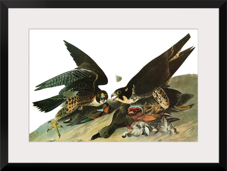 <p>Peregrine Falcon, or Duck Hawk (Falco peregrinus). Engraving after John James Audubon for his 'Birds of America,' 1827-38.</p>