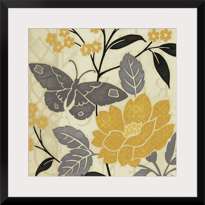 Art Plants and Flowers Decorative Art Florals Rose Graphic Art Pela Studio Butterfly Yellow Wall Art