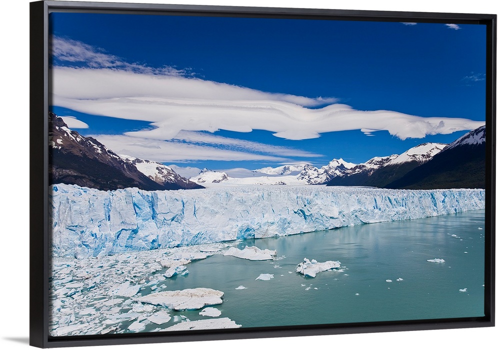 <p>Perito Moreno glacier wall and floating ice that broke off the wall.</p>