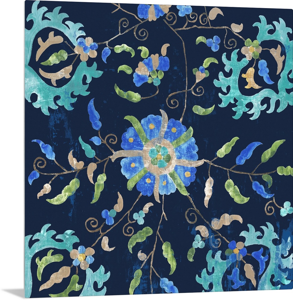 <p>Floral pattern in various blues with Persian inspiration.</p>