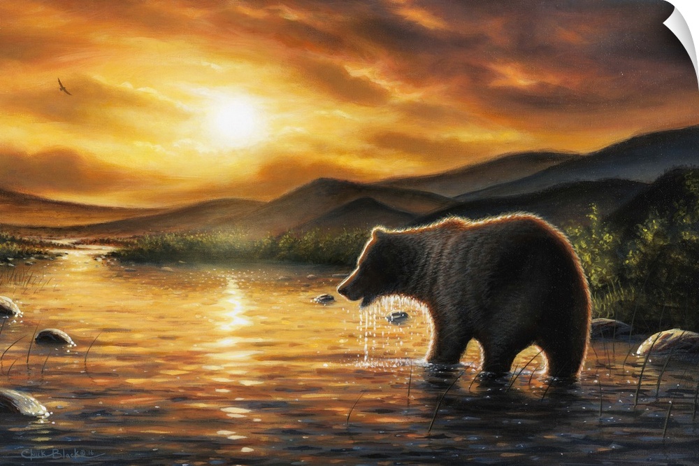 Art Chuck Black Contemporary Art Landscapes River, Creek and Stream Painting Wildlife Bear