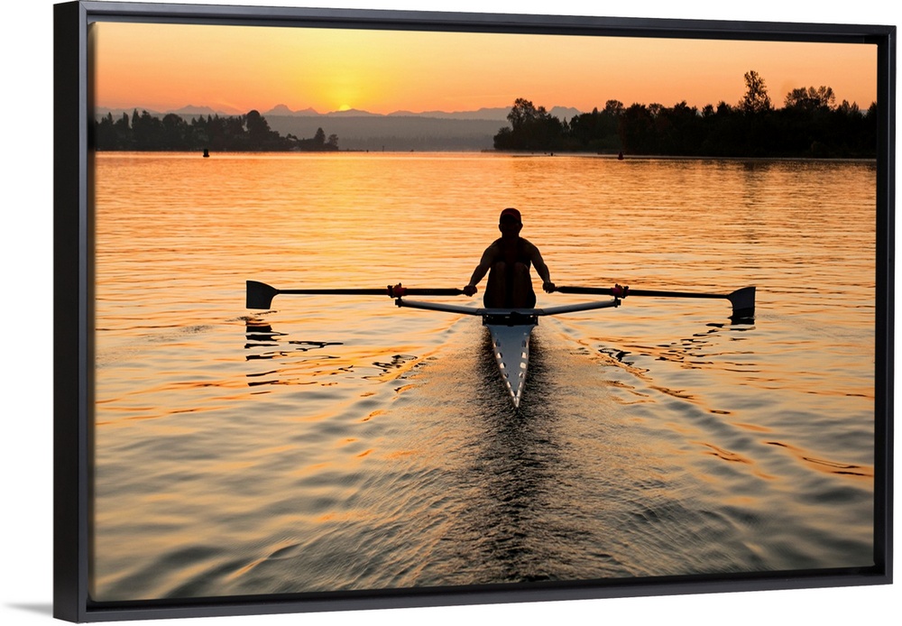 <p>Person rowing sculling boat on river</p>