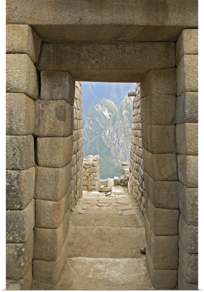 <p>Peru, Machu Picchu, Close-up of double-jamb doorway entrance.</p>