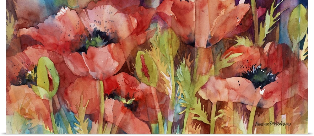 Art Annelein Beukenkamp Contemporary Art Plants and Flowers Florals Poppy Painting Red Wall Art Watercolor