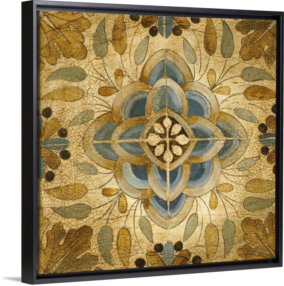 <p>Cracked tiles in a four-up panel in earthy tones with a simple, nature theme of leaves and petals.</p>