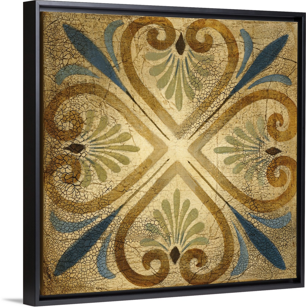 <p>This square shaped decorative accent is inspired by ceramic tiles and part of a series of four wall hangings.</p>