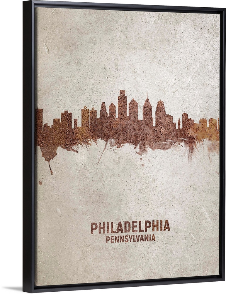 <p>Art print of the skyline of Philadelphia, Pennsylvania, United States. Rust on concrete.</p>