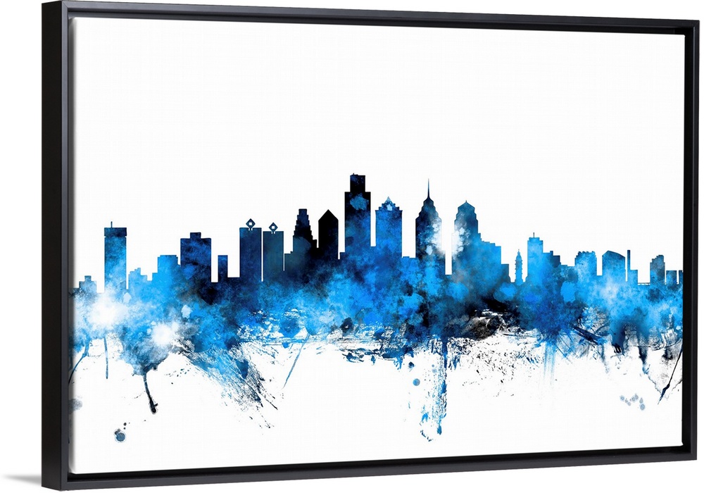 <p>Contemporary piece of artwork of the Philadelphia skyline made of colorful paint splashes.</p>
