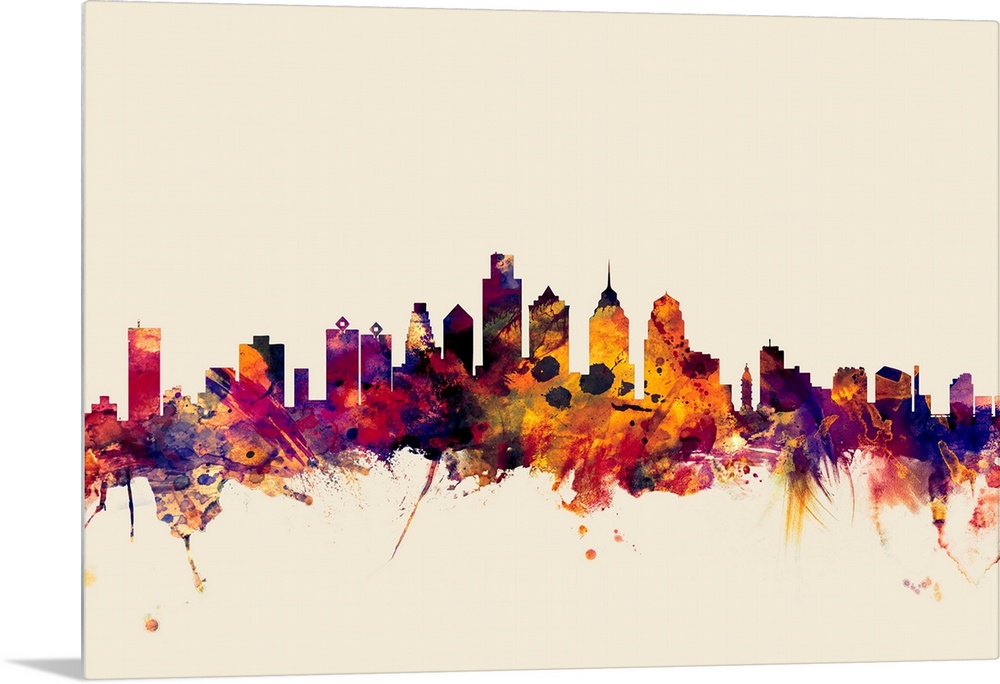 <p>Watercolor artwork of the Philadelphia skyline against a beige background.</p>
