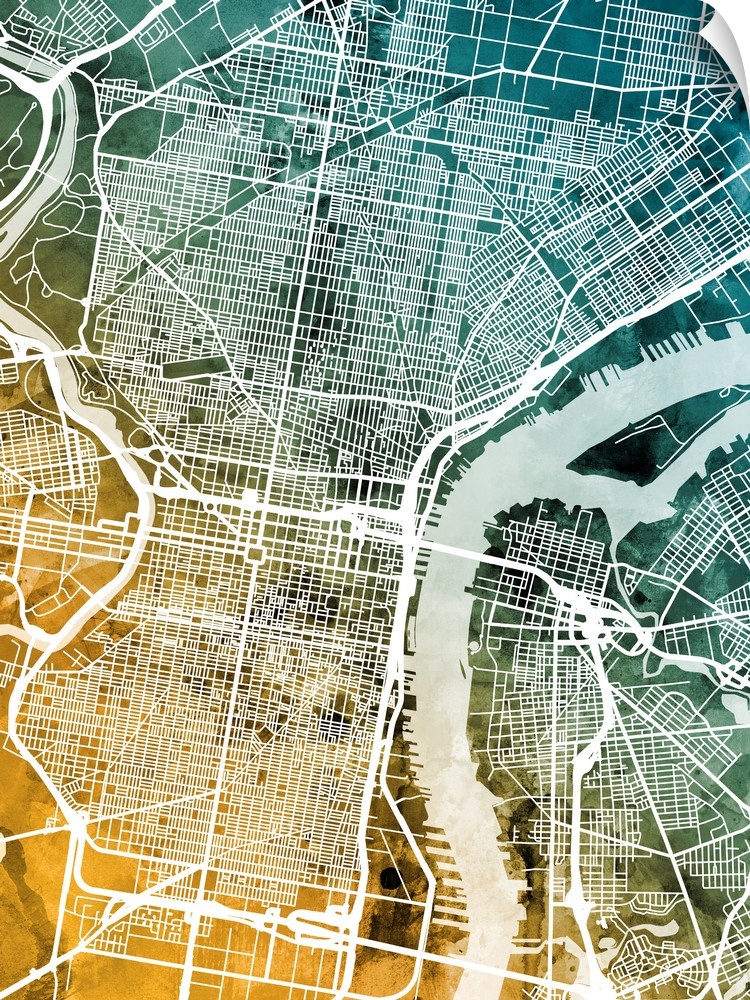 <p>Watercolor street map of Philadelphia, Pennsylvania, United States</p>