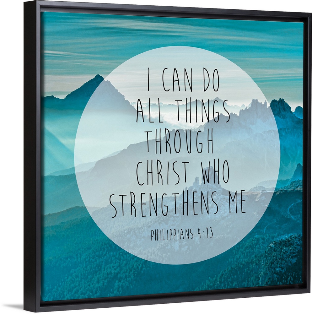 <p>Typography art of a Bible verse over an image of blue, misty mountains.</p>