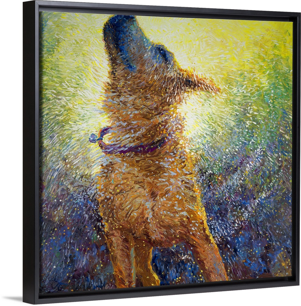 <p>Brightly colored contemporary artwork of a large dog shaking off water.</p>