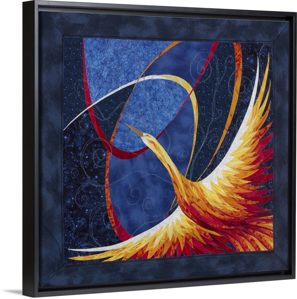 <p>Contemporary colorful fabric art of a phoenix.</p>