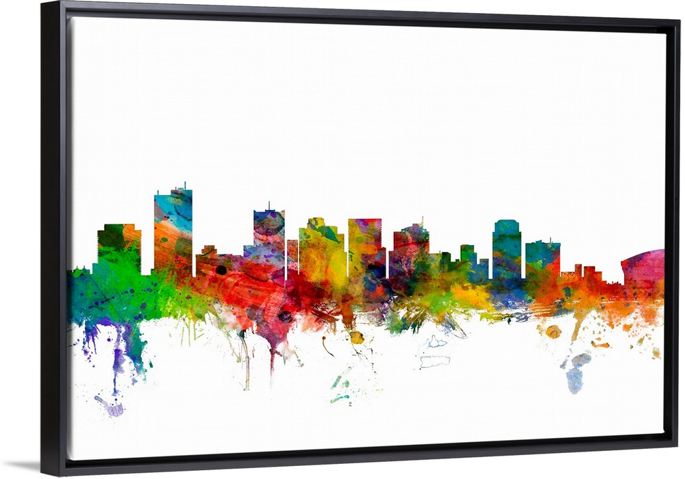 <p>Watercolor artwork of the Phoenix skyline against a white background.</p>