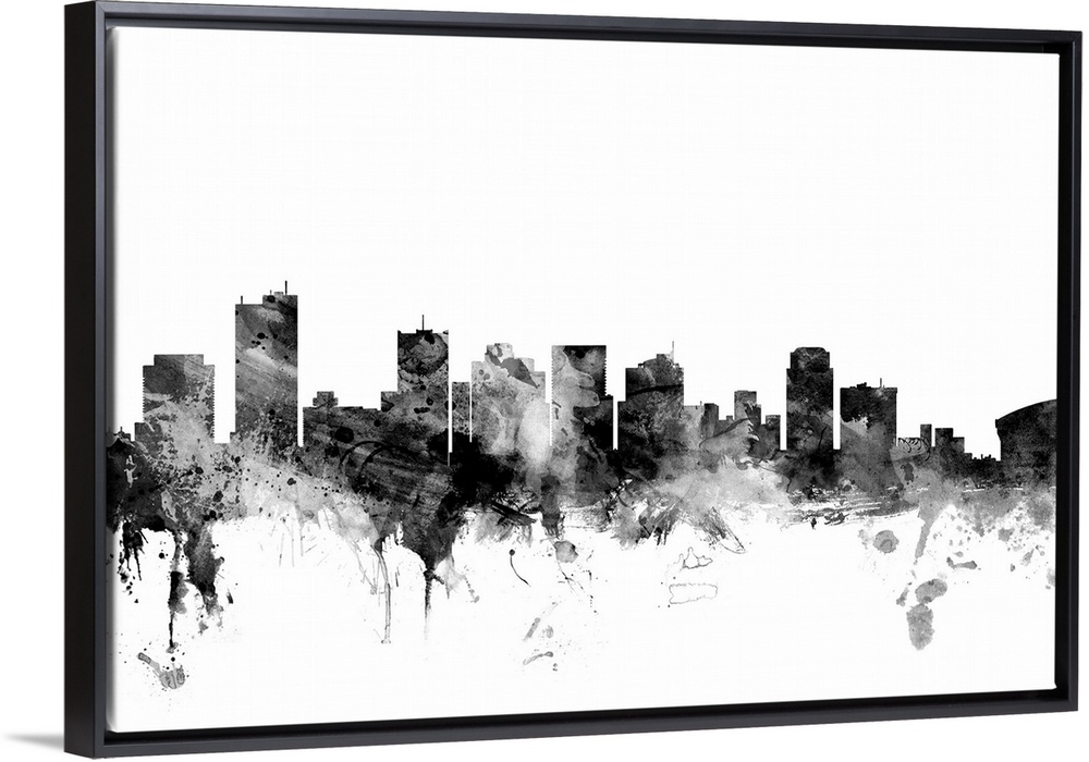 <p>Smokey dark watercolor silhouette of the Phoenix city skyline.</p>