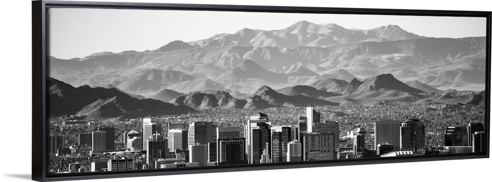 <p>Panoramic photograph of the Phoenix, Arizona skyline with hazy desert mountains in the background.</p>