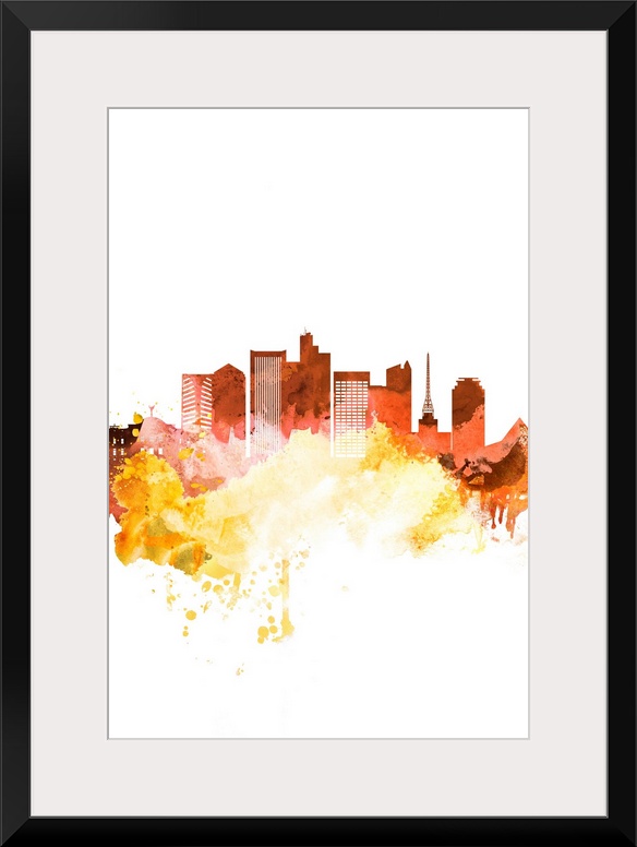 <p>The Phoenix, Arizona city skyline in orange and yellow watercolor splashes.</p>