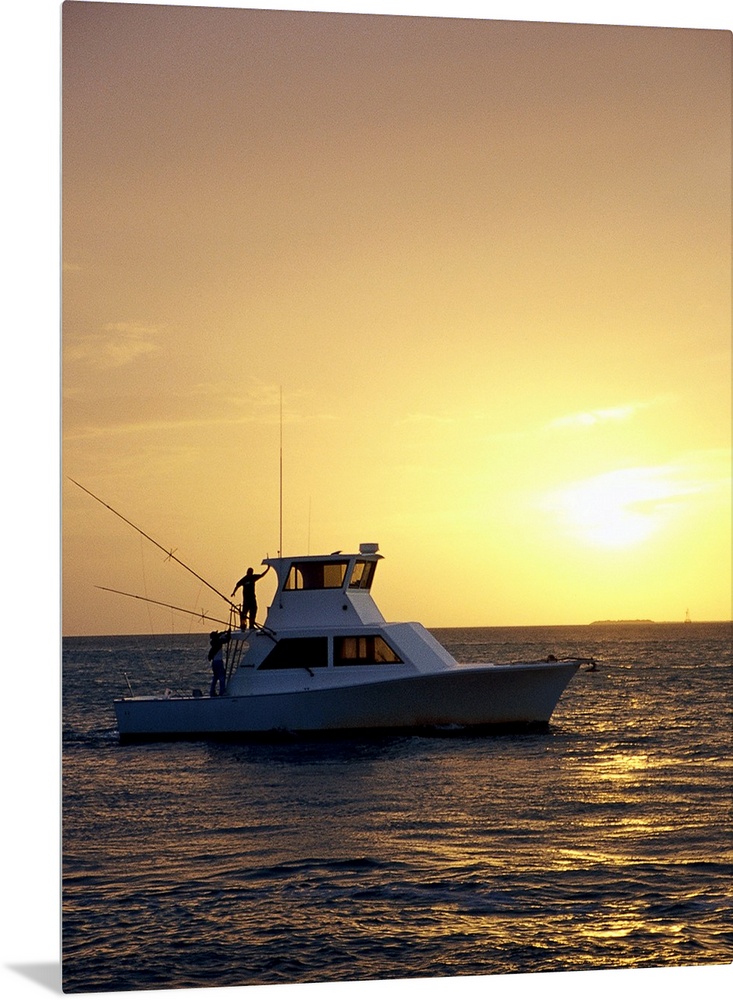 <p>Photo, Silhouette view of a fishing boat during sunset</p>