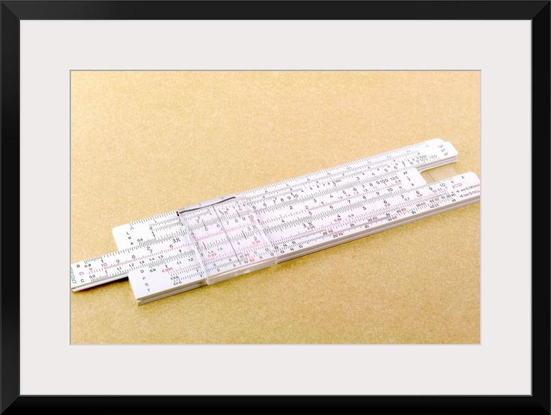 <p>Logarithmic slide rule. This adjustable ruler contains the values for logs, which are used to aid multiplication and division. Logarithms are mathematical functions relating numbers to the powers of a set base number such as ten. Slide-rules have been superseded by the use of electronic calculators.</p>