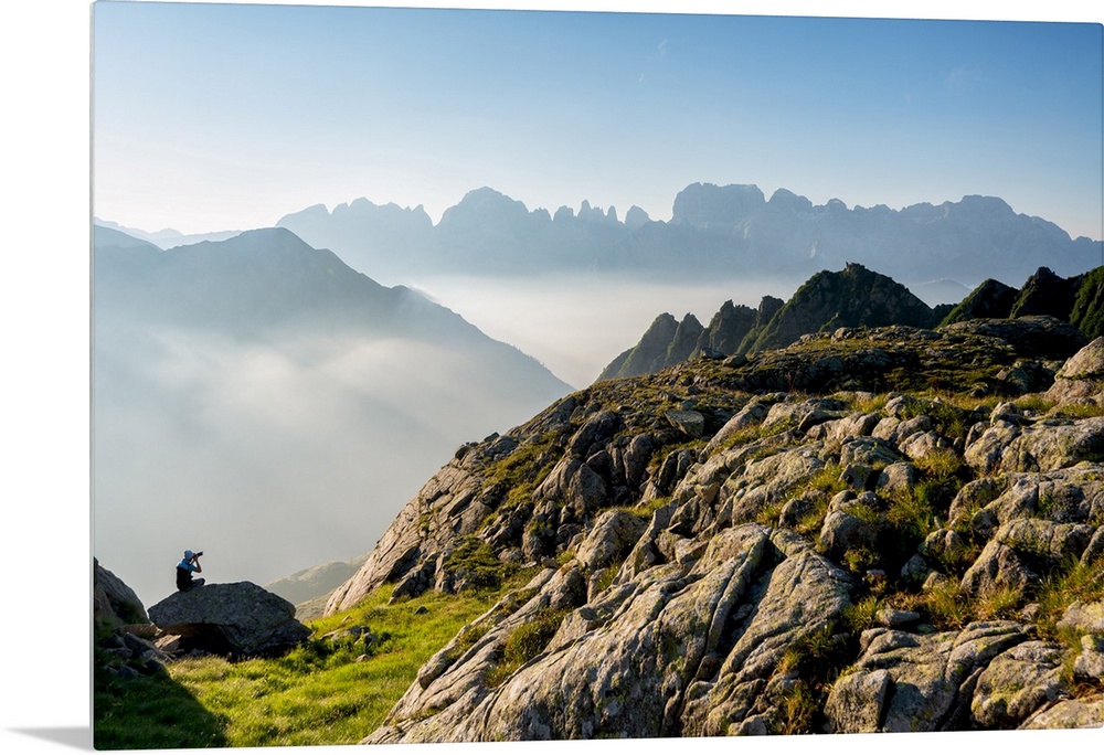 <p>Photographer in Brenta Dolomites in summer season, Trentino Alto Adige, Italy, Europe</p>