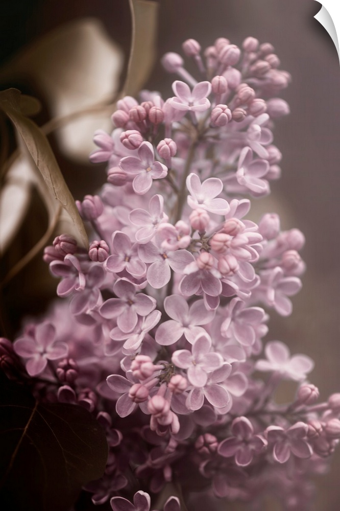 <p>A branch of lilac stands out against a blurred gold background.</p>