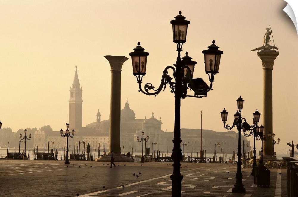 <p>Piazza San Giorgio across from St. Mark's Square at dusk in Venice, Venice, Veneto, Italy</p>