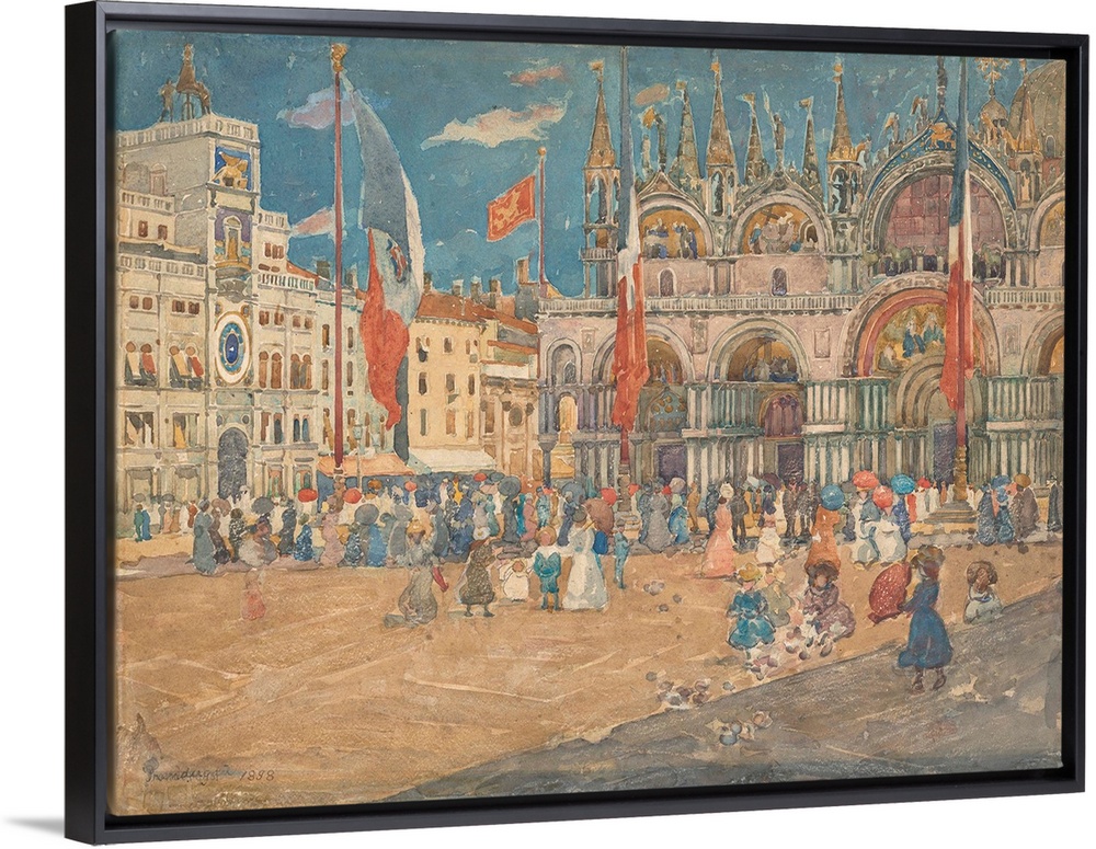 <p>Piazza San Marco, by Maurice Brazil Prendergast, 1898, American painting, oil on canvas. The artist painted a series of watercolors while in Venice in 1898 which were exhibited at the Macbeth Galleries in New York in 1900</p>