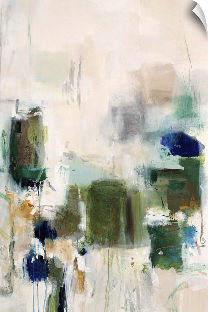 <p>Vertical abstract artwork with vivid squares of green on white.</p>
