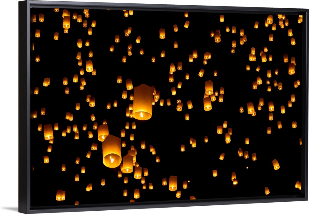 <p>Picture of numerous hot air lanterns in sky floating away at Yee Peng or Yi Peng festival in Chiang Mai province in Chiang Mai, Thailand.</p>