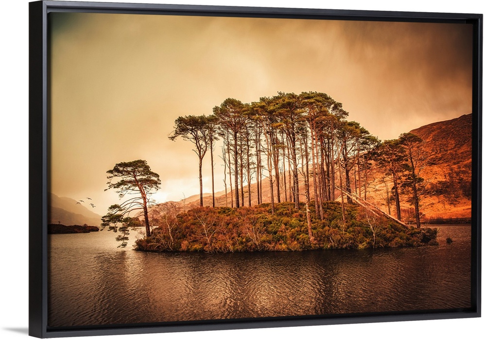<p>Group of trees in the middle of a lake in Scotland</p>