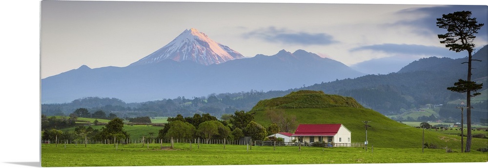 <p>Picturesque Mount Taranaki (Egmont) and rural landscape, Taranaki, North Island, New Zealand</p>