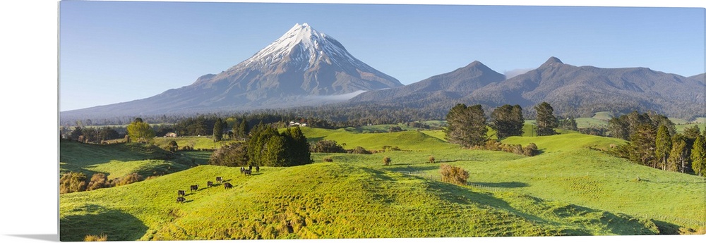 <p>Picturesque Mount Taranaki (Egmont) and rural landscape, Taranaki, North Island, New Zealand</p>