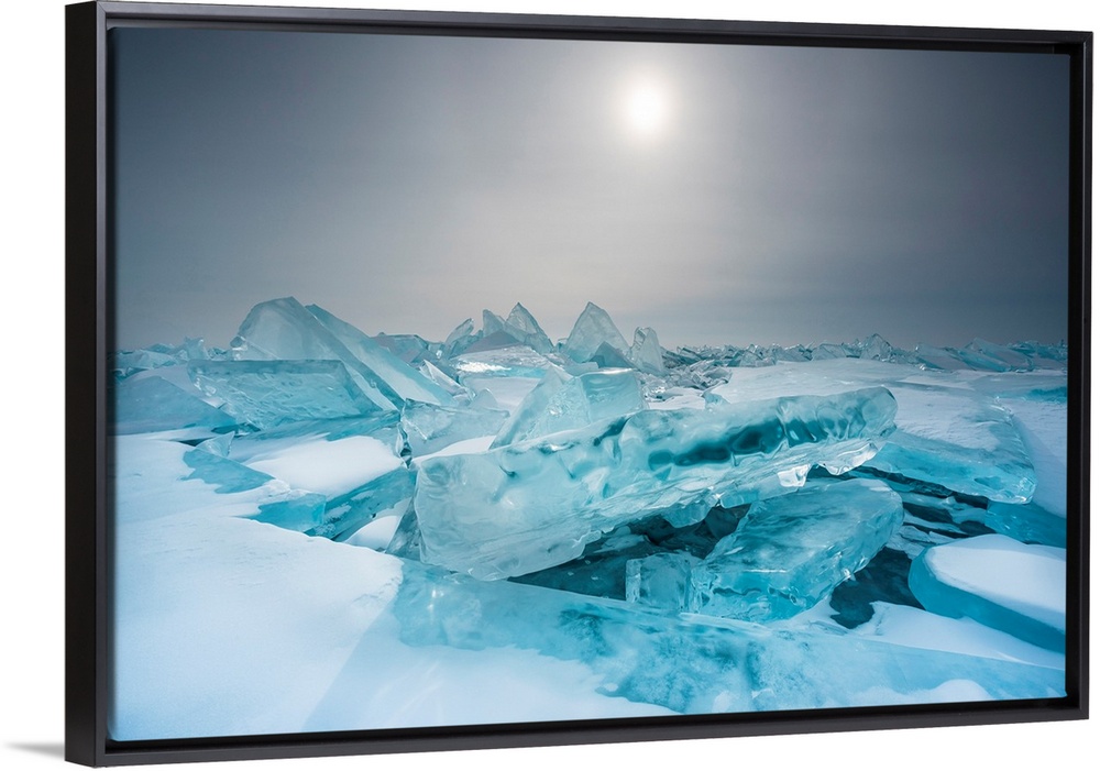 <p>Pieces Of Ice With Sun Reflection At Lake Baikal, Irkutsk Region, Siberia, Russia</p>