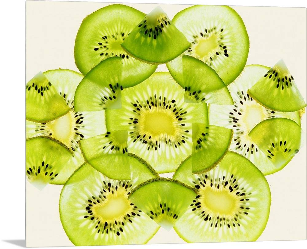 <p>Thin slices of a fruit arranged in a symmetrical kaleidoscope pattern.</p>