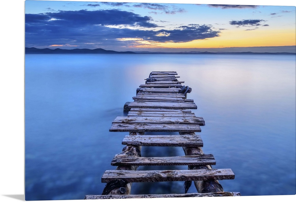 <p>A decrepit pier jetting out over smooth blue water in Croatia.</p>